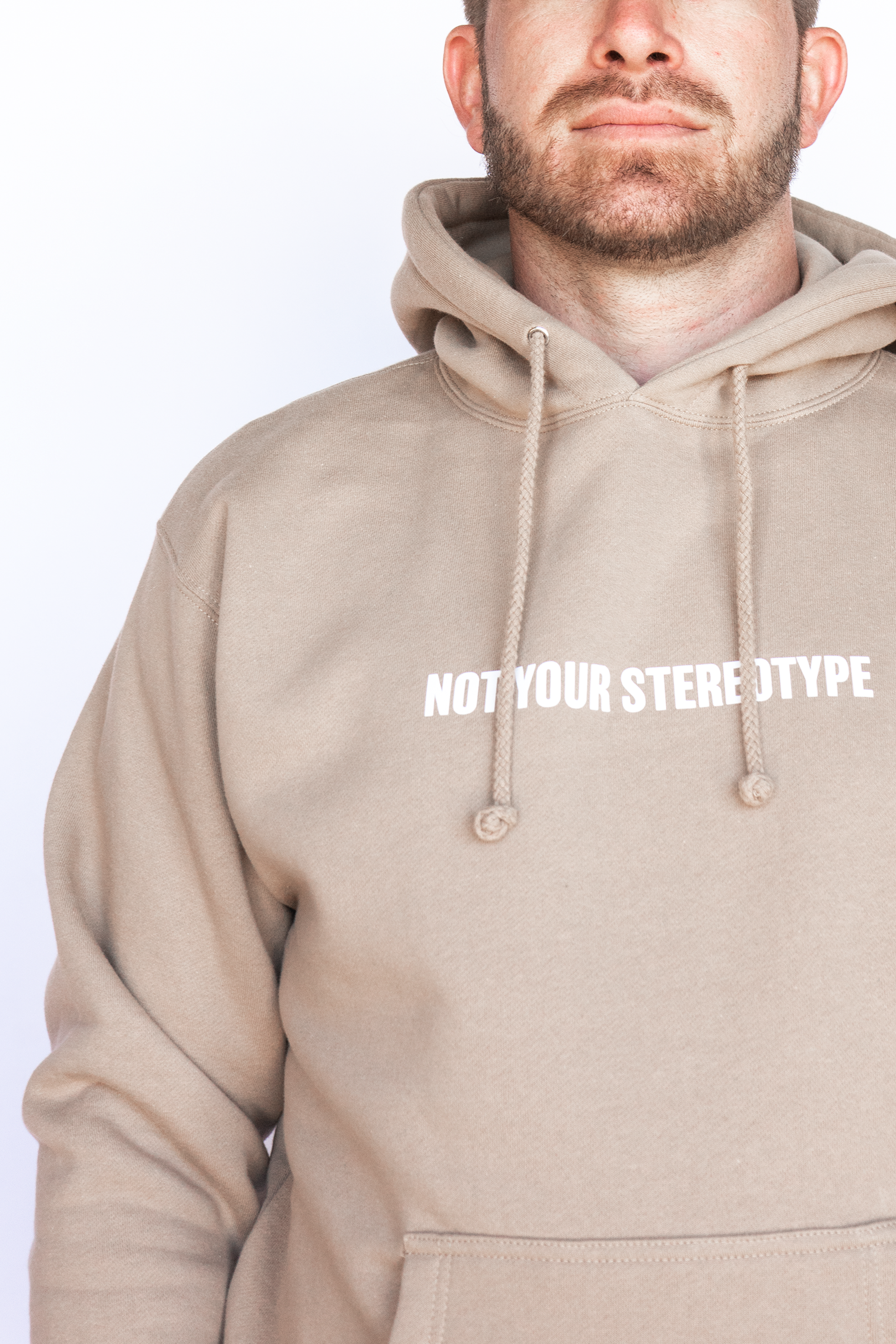 Our 12oz unisex "Classic Hoodie" is available in two colors, Black and Tan/Beige. This soft heavy weight hoodie is tagless and made of 80% cotton and 20% polyester. The hoodie features the the brand name, NOT YOUR STEREOTYPE, across the chest. Simple and effective.