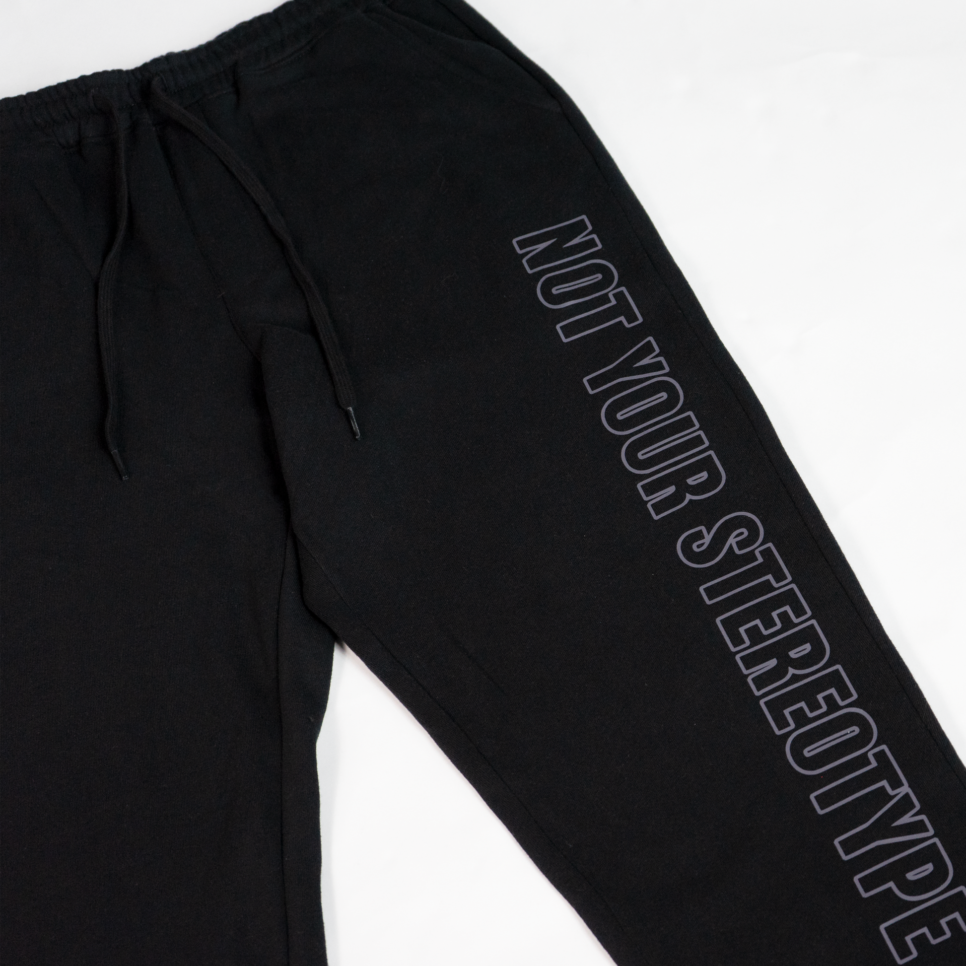 The 8.5oz Classic joggers feature our brand name “NOT YOUR STEREOTYPE” in charcoal down the side of the left leg. The relaxed fit unisex jogger is made of 80% cotton and 20% polyester.