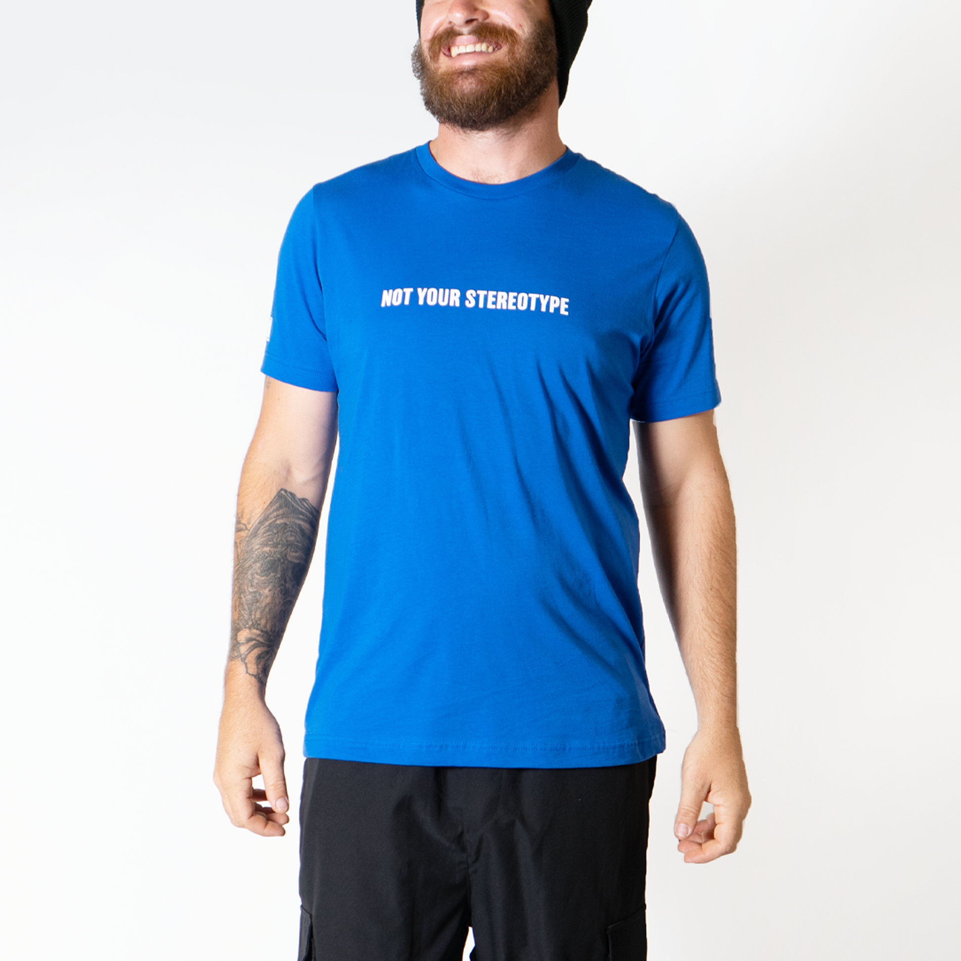 Our unisex Classic Soft Tee is available in two colors, Baby Blue and True Blue. The tee features the brand name, "NOT YOUR STEREOTYPE", across the chest and is made of 100% cotton.